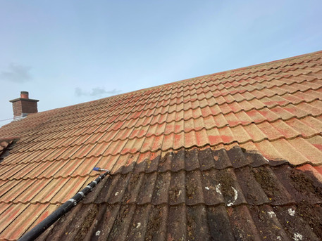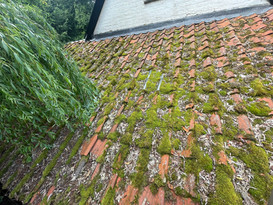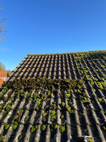 Our most popular roof clean is a scrape and biocide. We remove as much moss as we possibly can using metal profiles, then we clear all the debris from the gutters and finally we brush a biocide in. This ensures all remaining moss and lichen particles are killed off. A site revisit is booked after 6 months to check the progress and we guarantee the clean for 2 years.